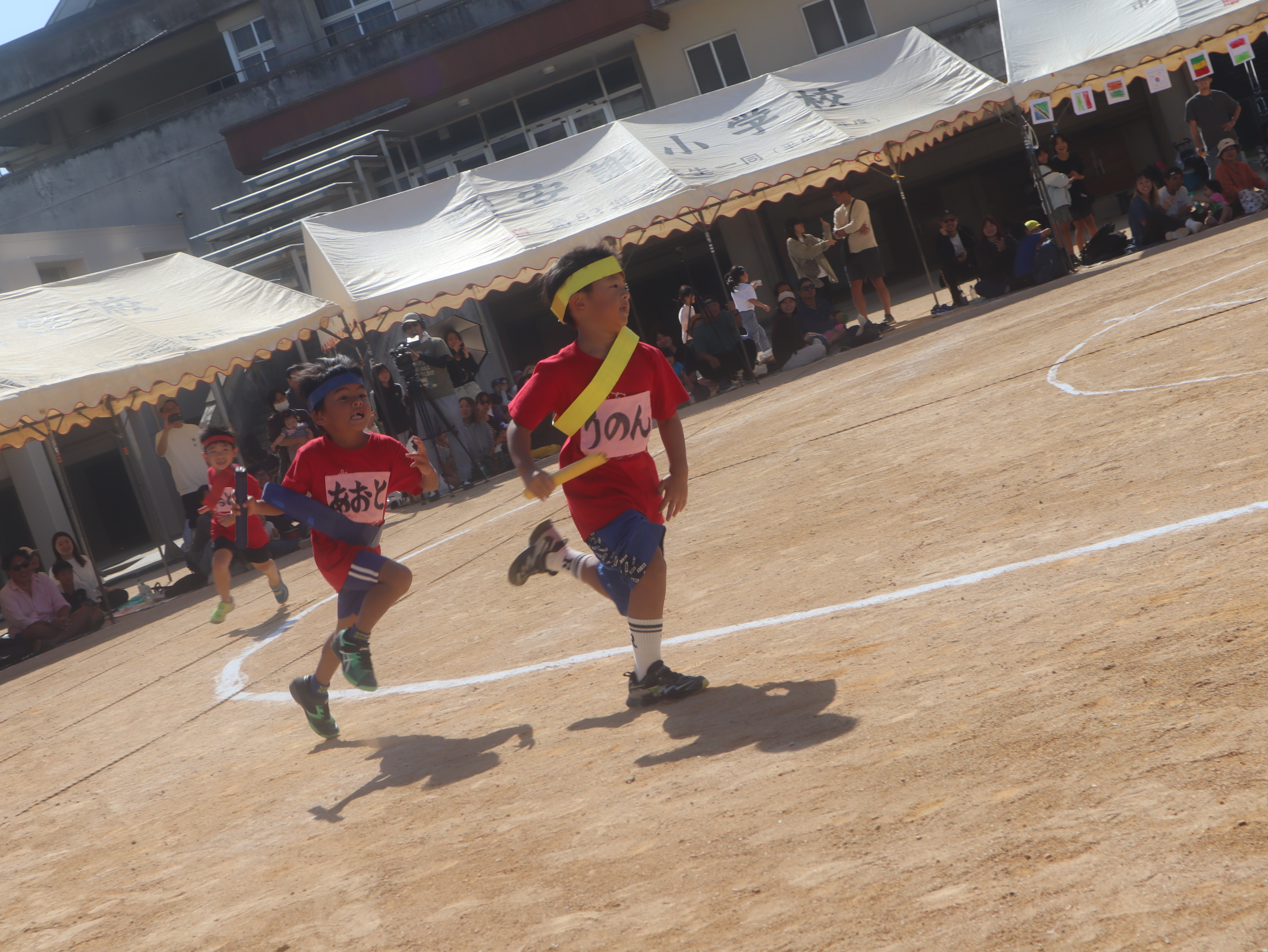 リレーは白熱した戦いになり、大人も大コーフンでした