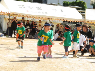親子で参加のリレーは、涙あり、笑いありの白熱した競技になりました