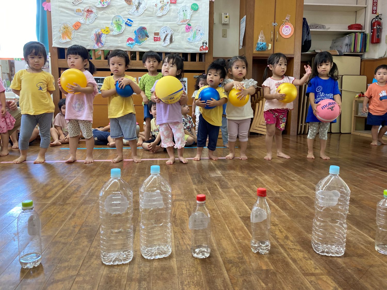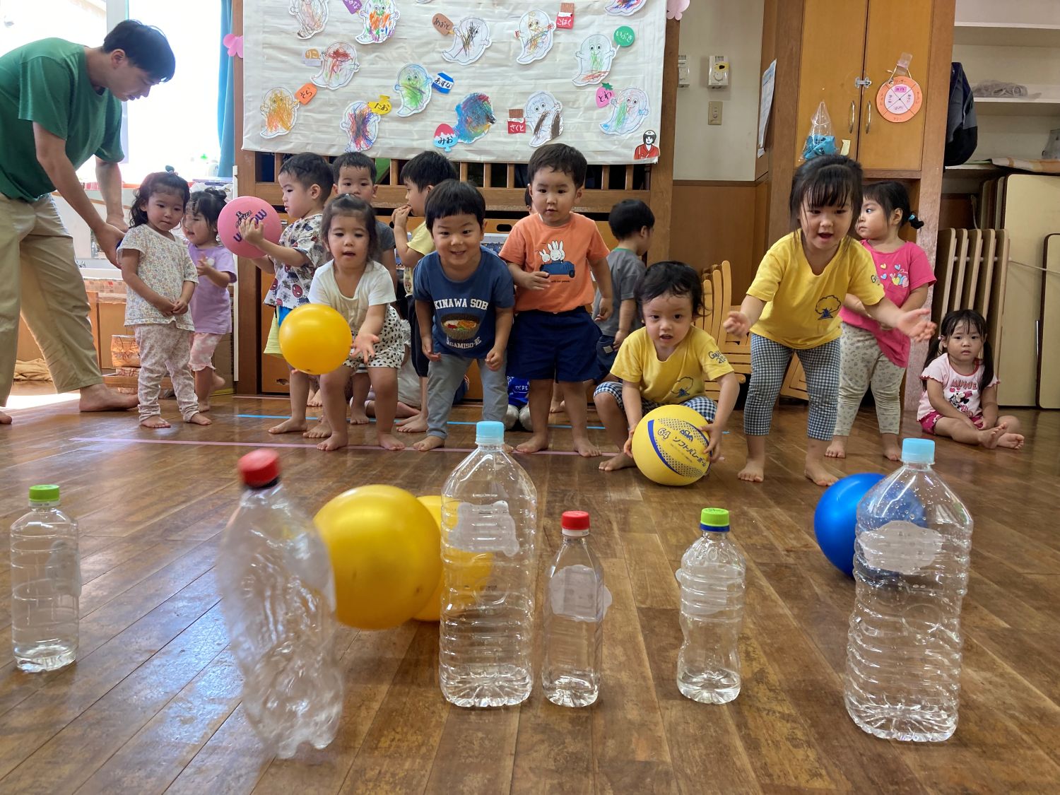 ペットボトルを使った手作りのボーリングもしました!