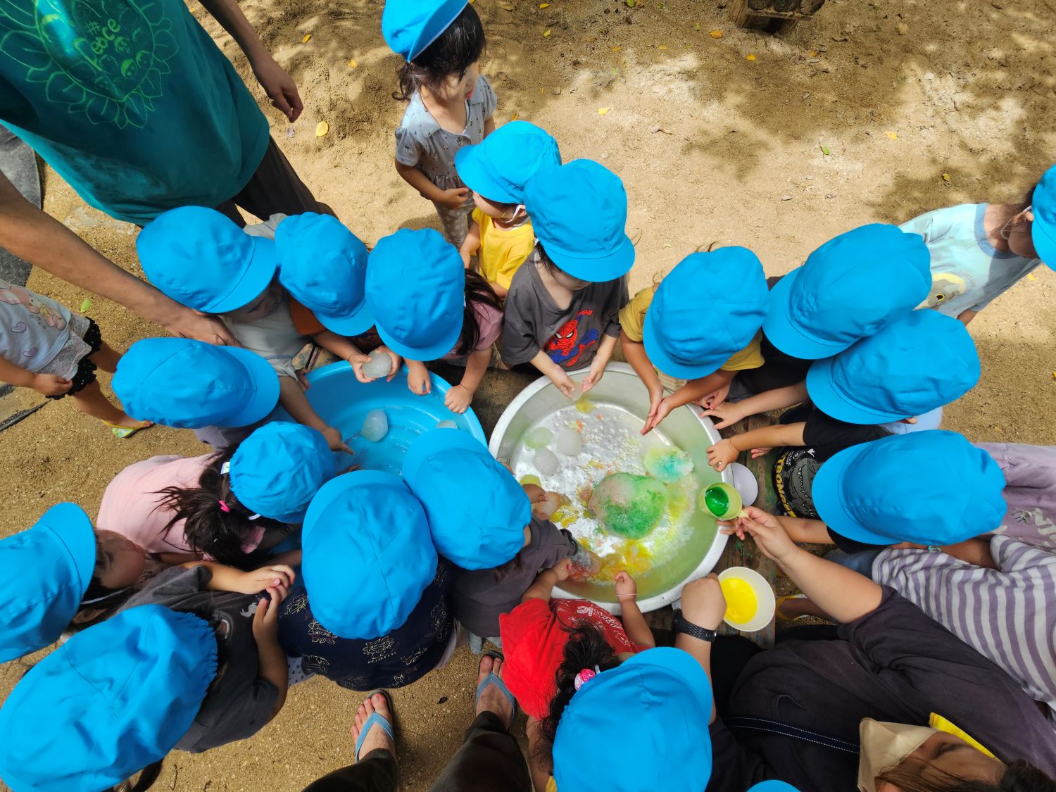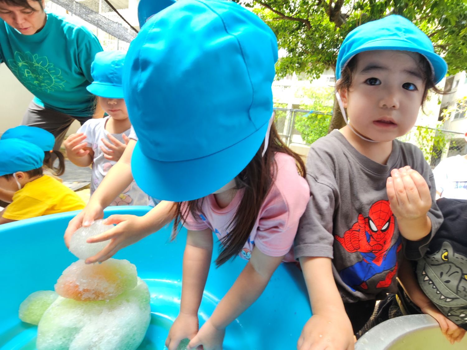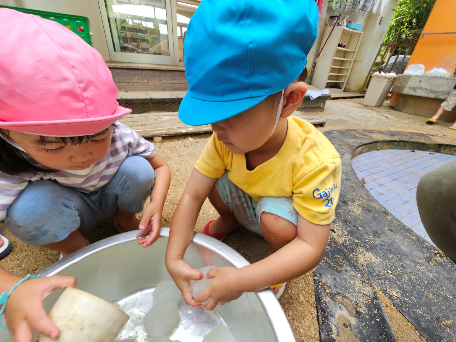 保護者会カレーパーティーの際に余ったかき氷の氷を丸めて氷を作り遊びました~(*'▽')