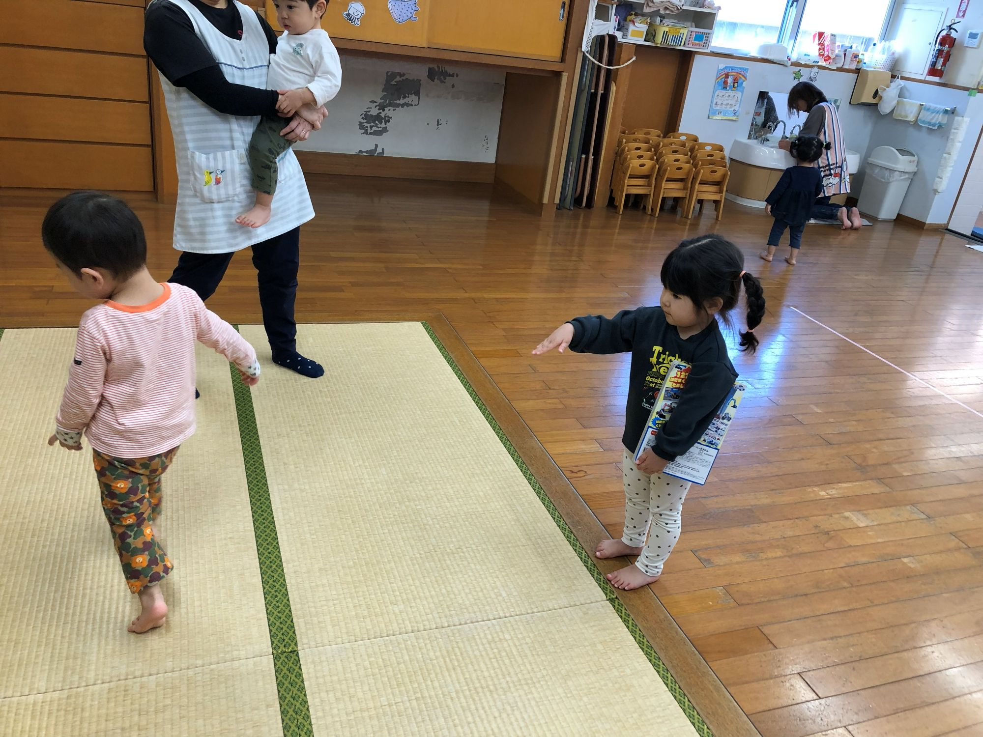 トントンを始める子もいたりと先生になりきる子もいましたよ~(^O^)
