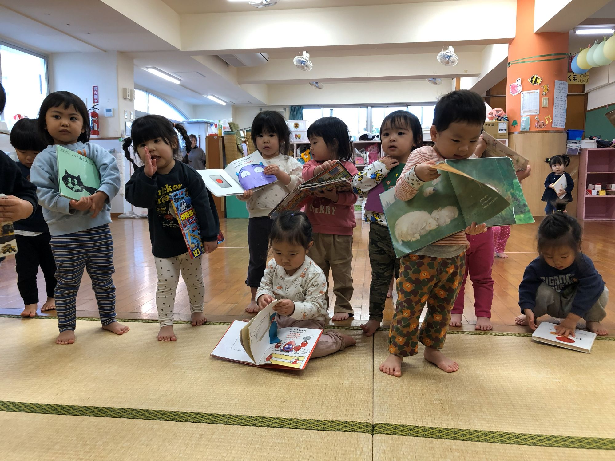 他のお友だちも次々に絵本をかかえてやってきました(*´▽`*)