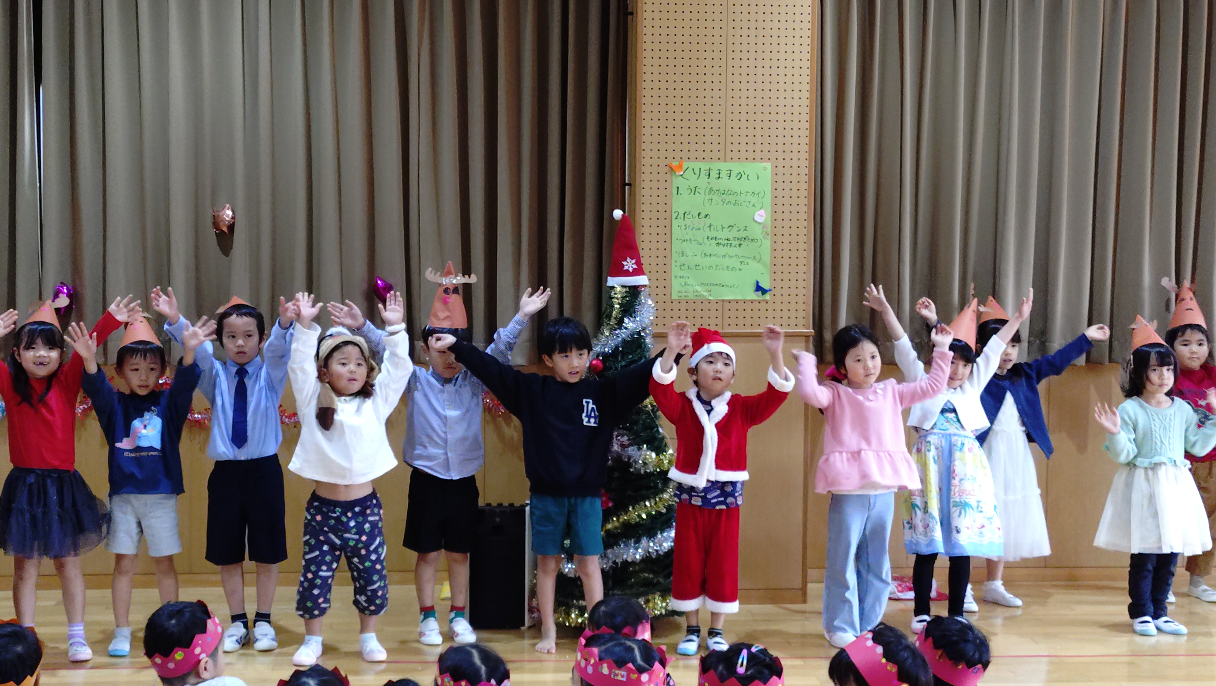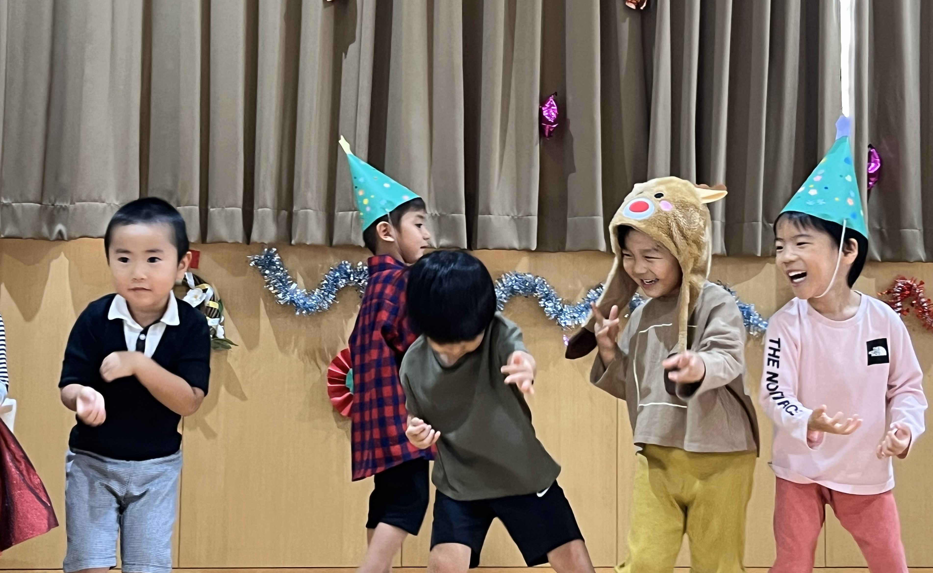 子ども達の出し物や歌、先生の出し物もあり楽しいクリスマスパーティーになりました。