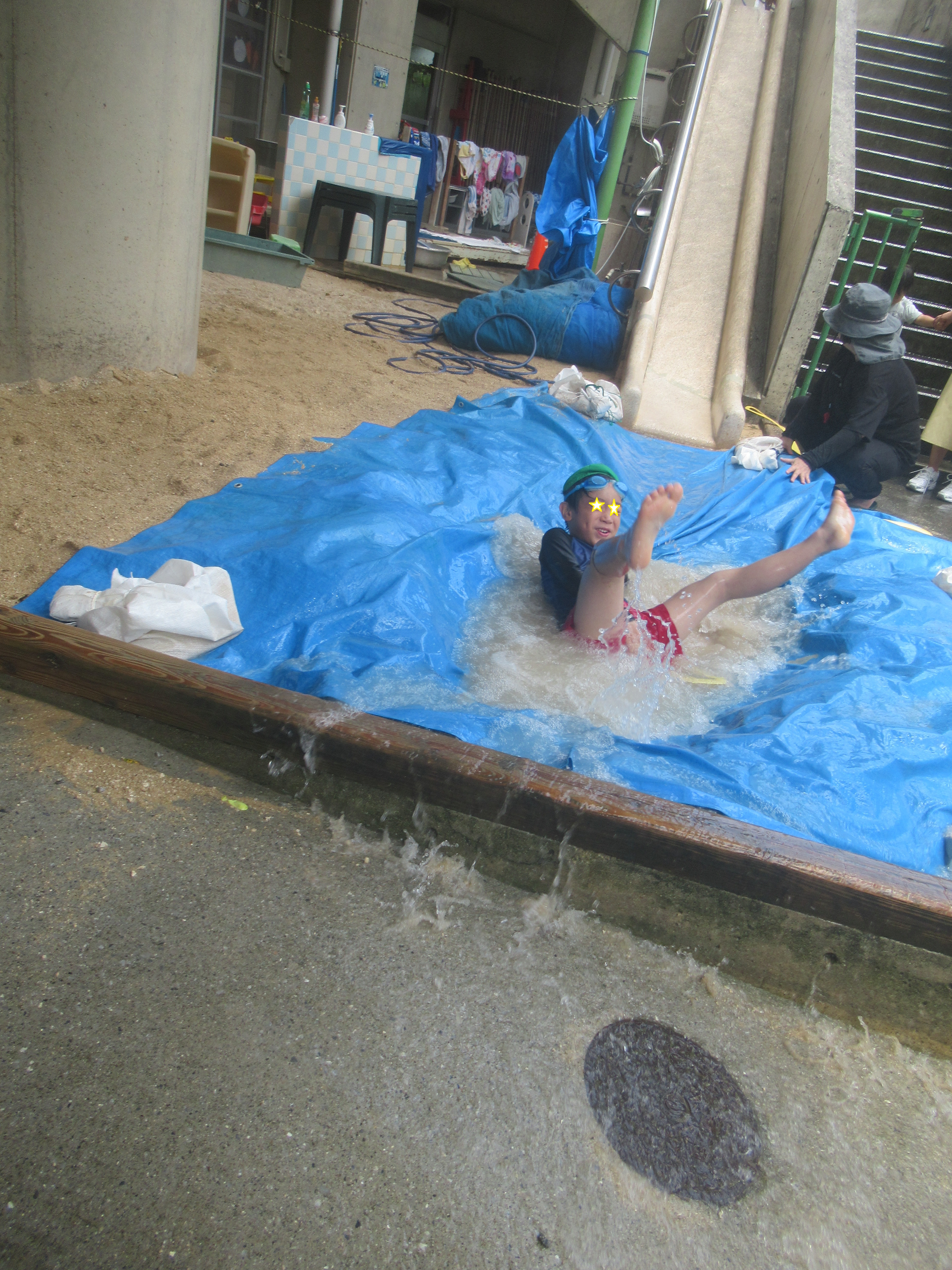外に出て、水遊び開始!!