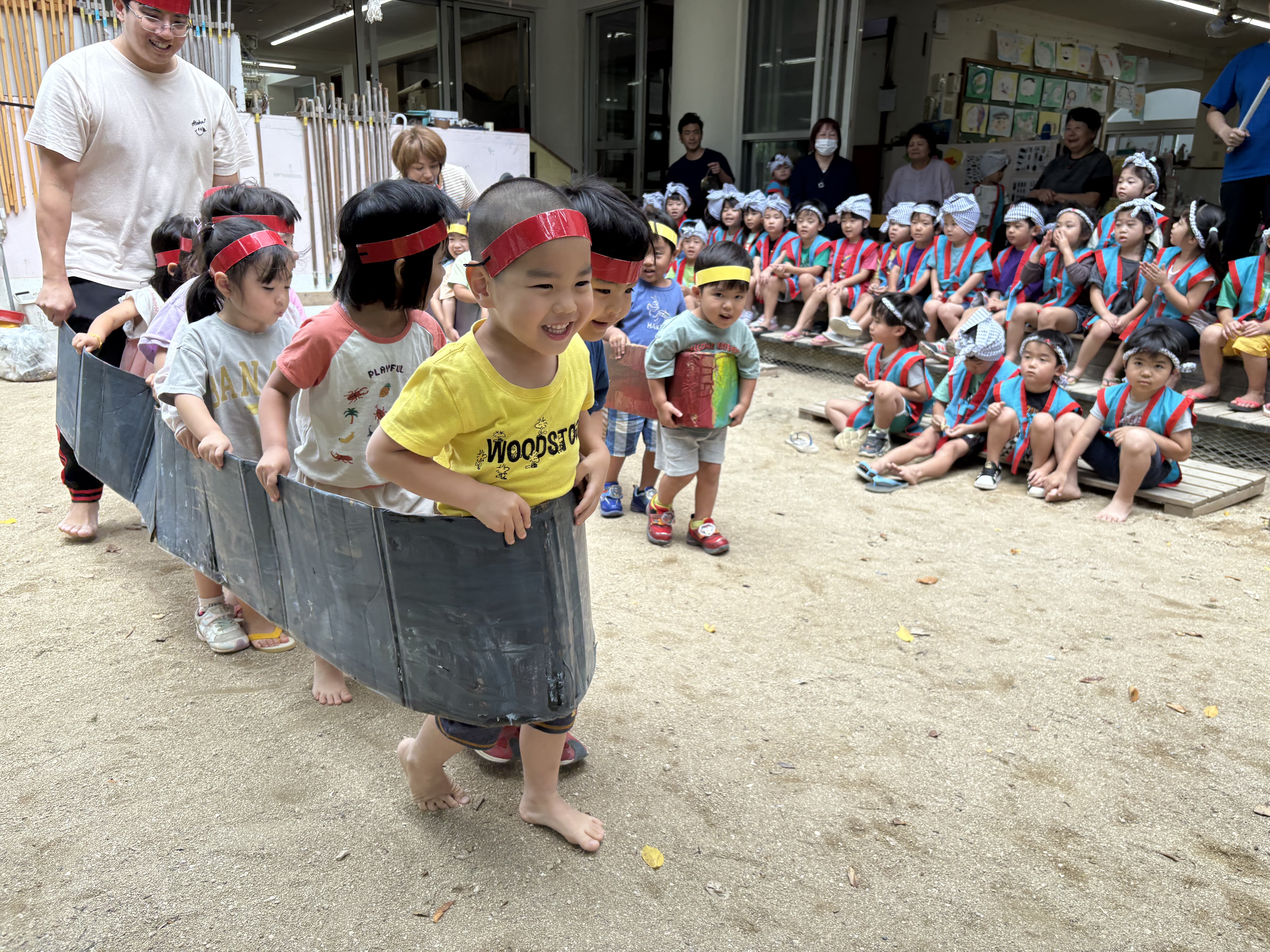 こどもたちの熱いレースに保育士も大きな声で応援!