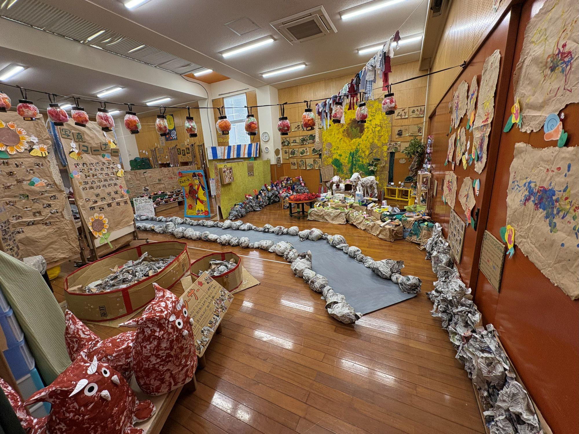 廃材を使って作った自分たちの好きなものを飾りましたよ~(*‘∀‘)!