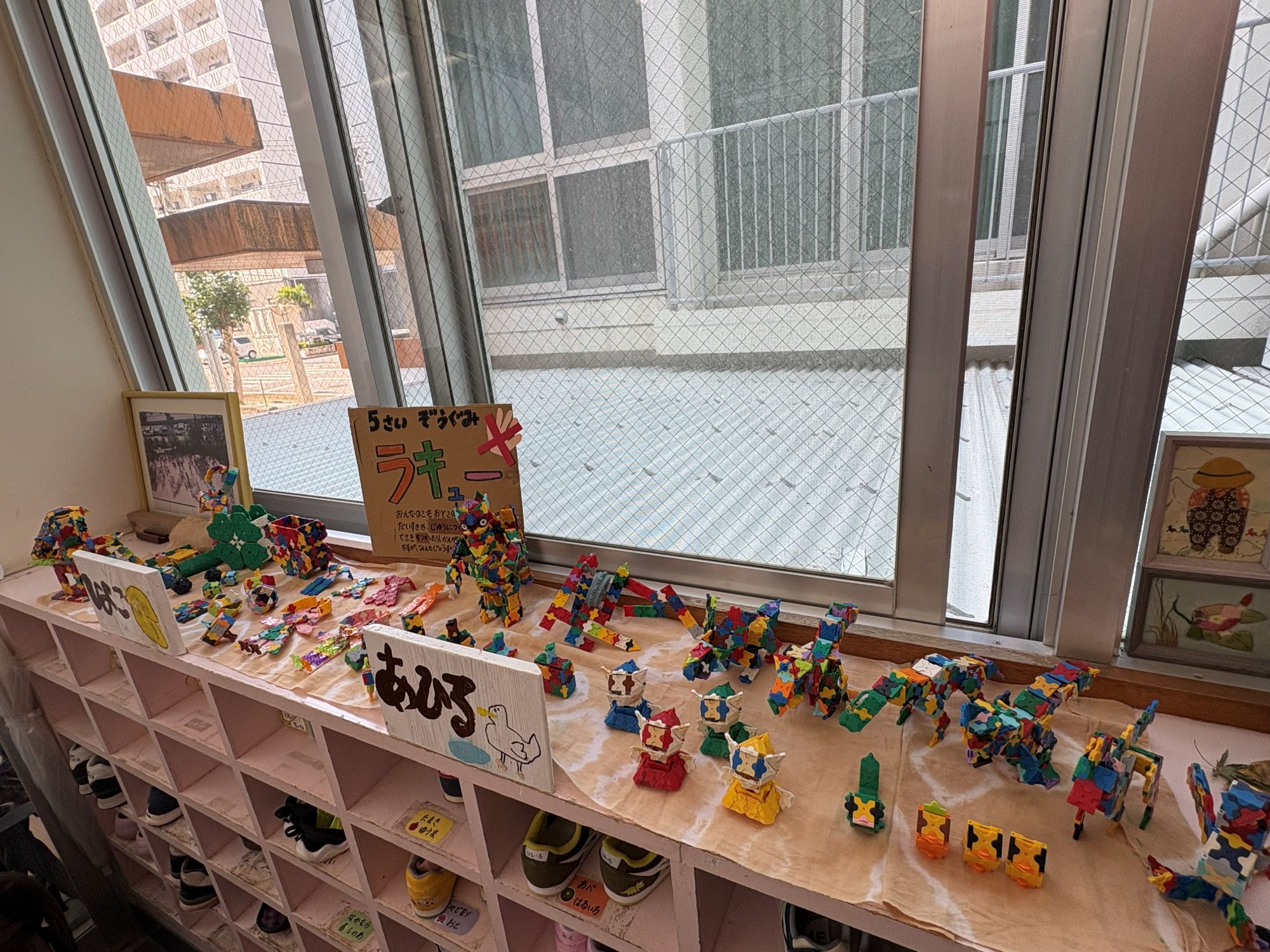 玄関にはぞうぐみ(5歳児)さんがLAQで作った作品も並んでいますよ~