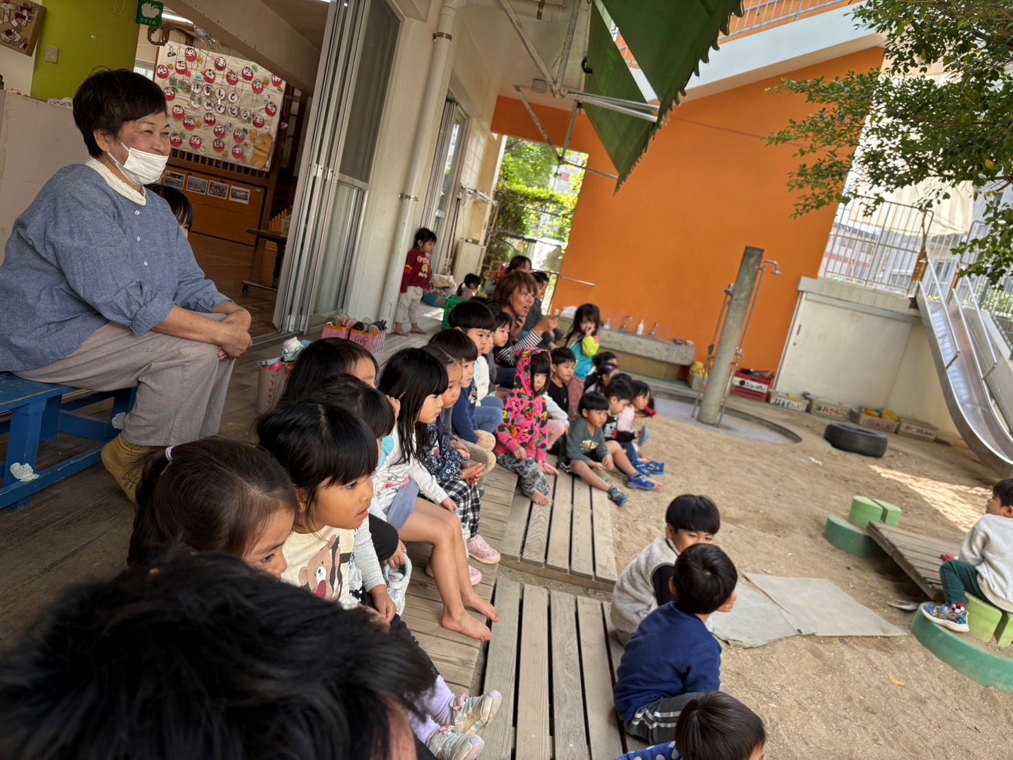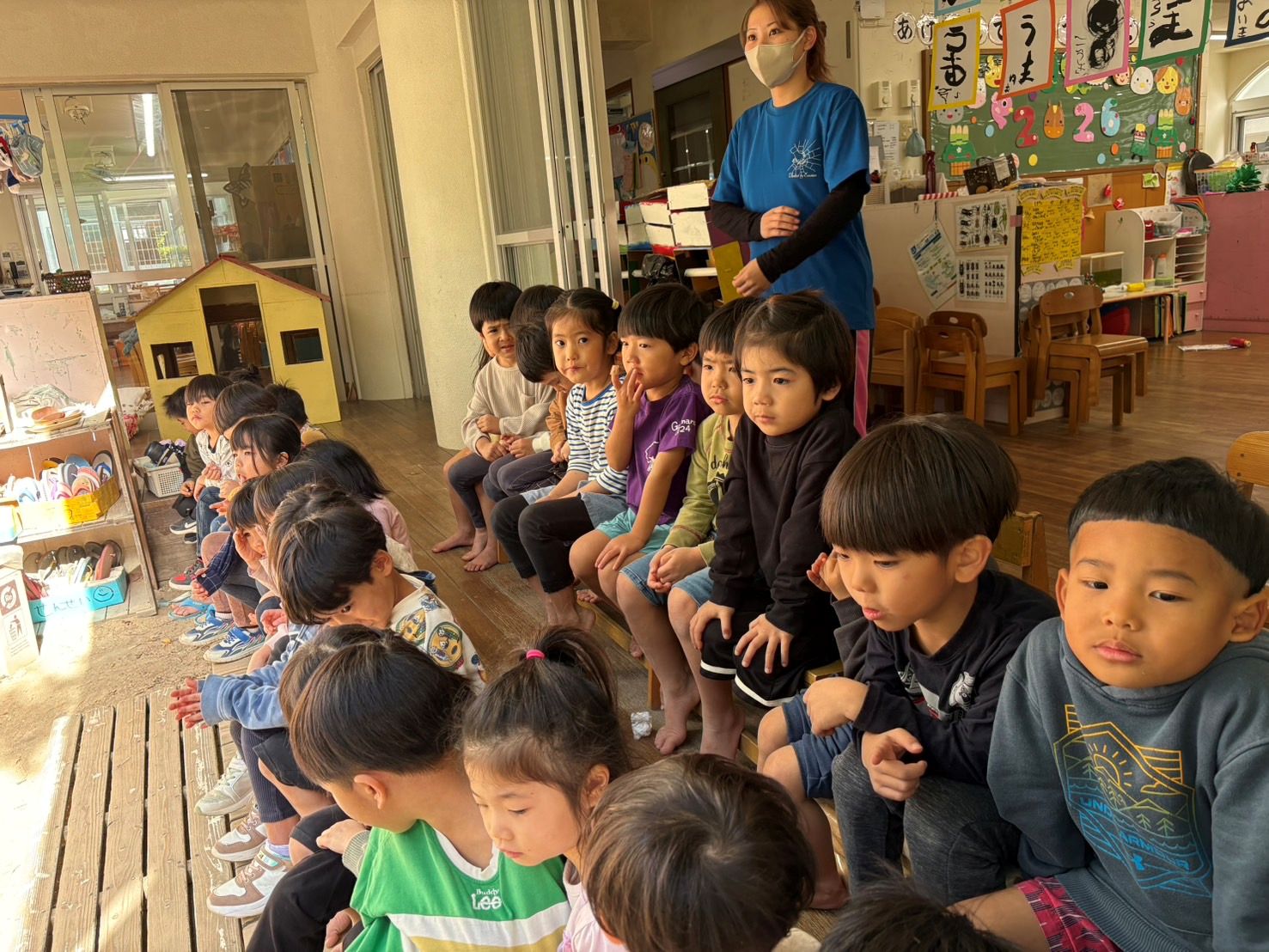 グーチョキパーの手遊びをした後にみんなで読み聞かせが始まりました~(^^♪