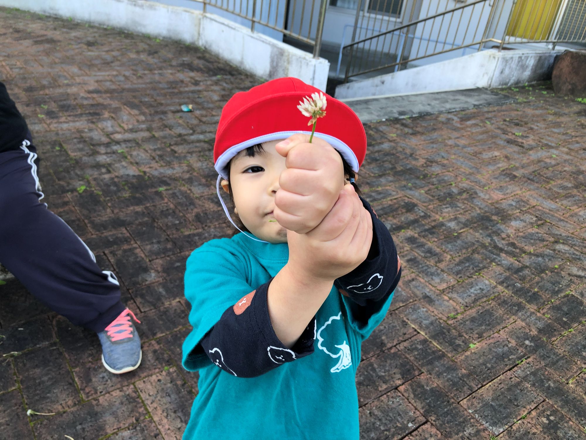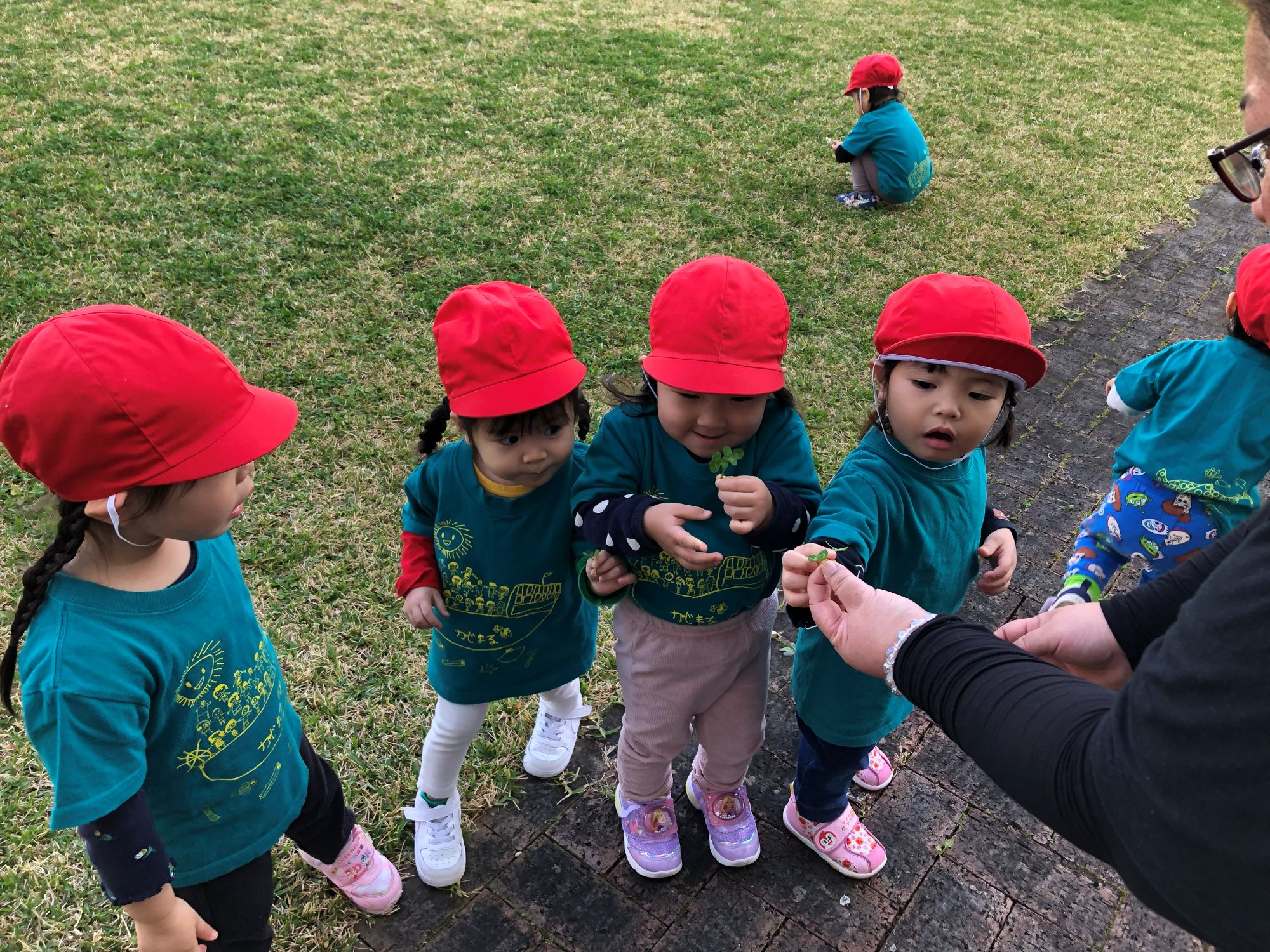 公園ではシロツメクサを摘んだり