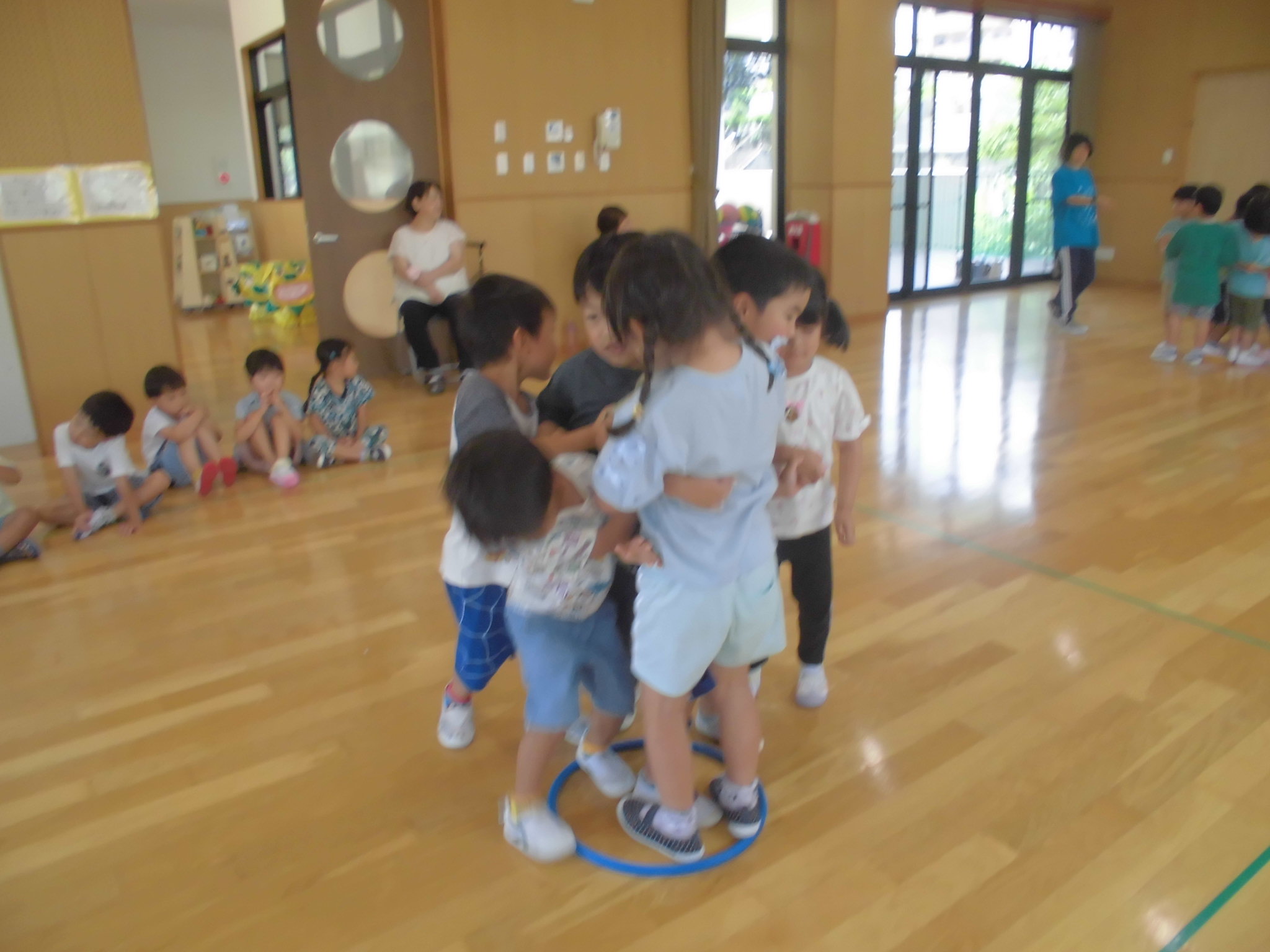 そら組、うみ組(4歳児)『フラフープ陣取り』