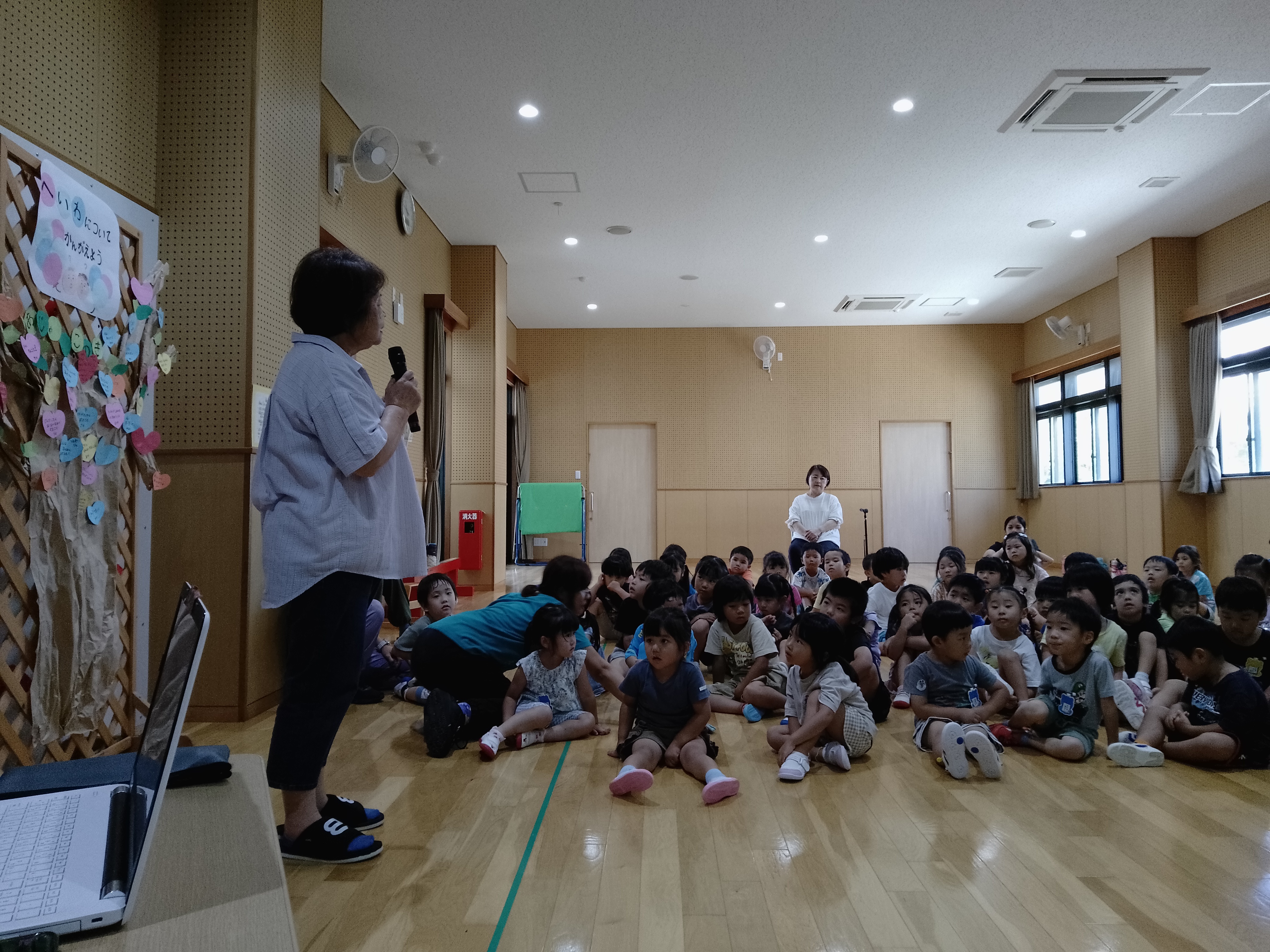 子ども達と平和について考えていこうと平和月間を設け、6/11(水)にあじゃ保育園に訪問し