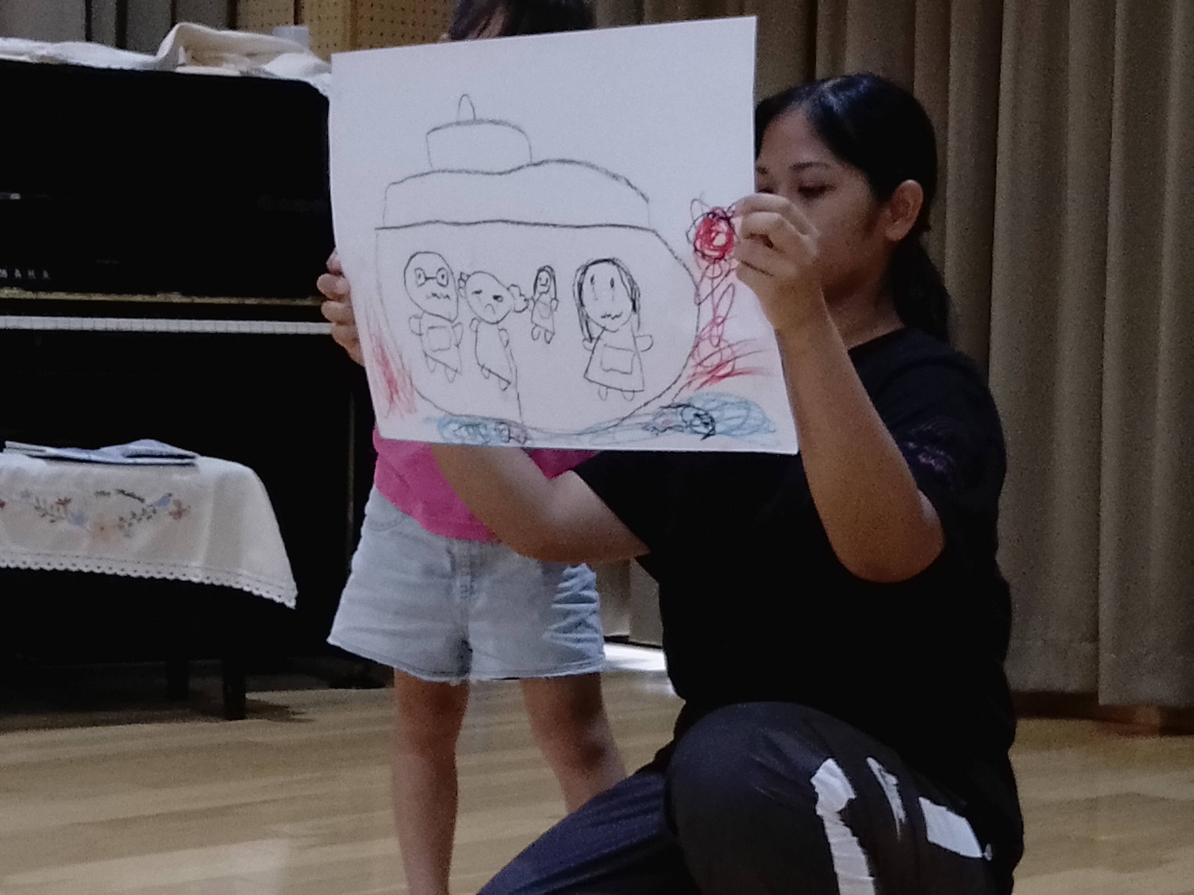 年長組は、『対馬丸』の映画を視聴し、その時に感じたことを絵に描いて発表してくれました。
