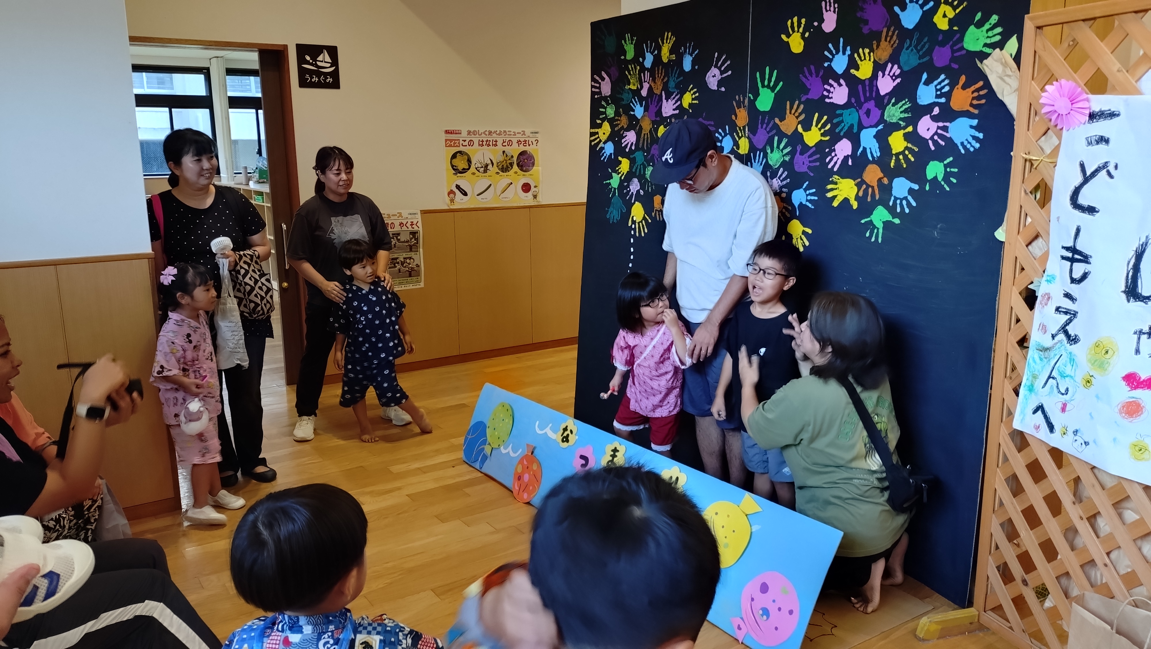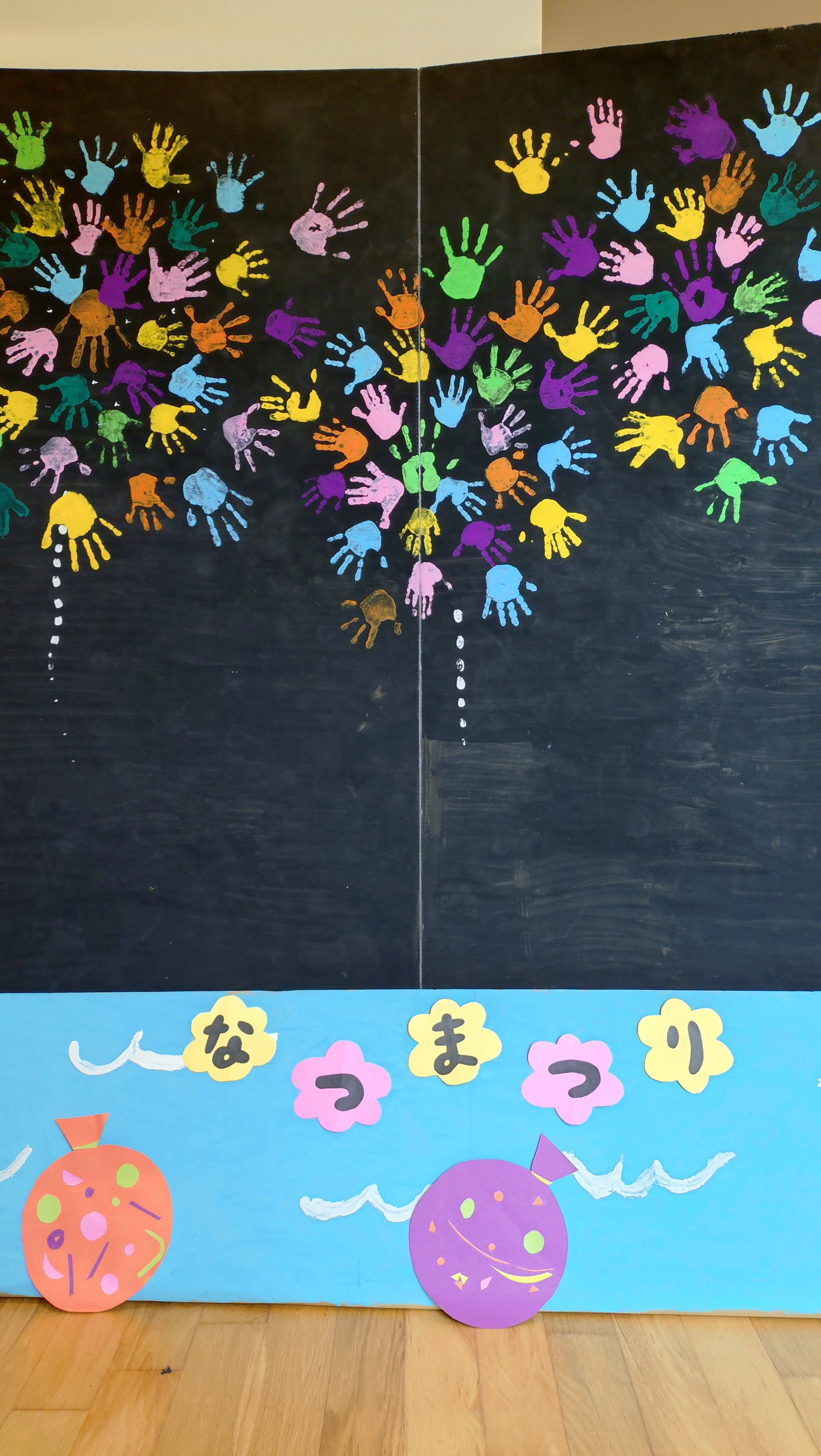 最後は、園児の手形を使ってできた打ち上げ花火の前で、記念撮影をしました。