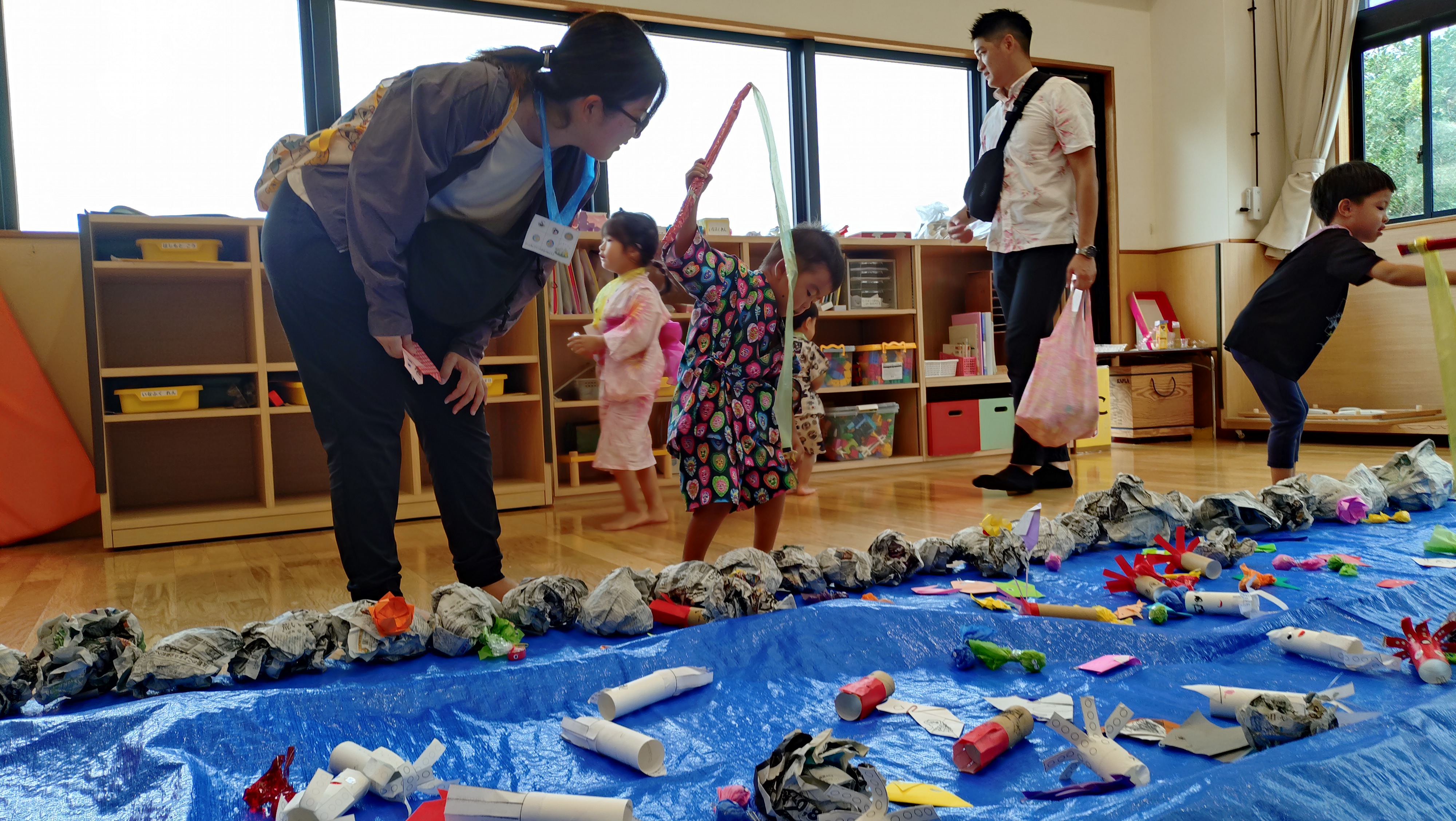 夏まつり 8/30(土)園内にお祭りの曲が流れ、浴衣や甚平を着用した子ども達が家族と集まり、
